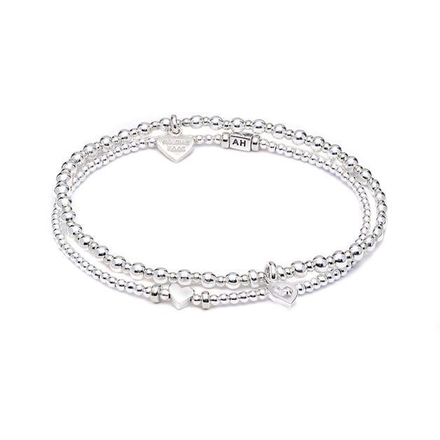 Wear your heart on your sleeve with the dainty and gorgeous Love Bracelet Stack by Annie Haak. Handcrafted in 925 Sterling Silver, this two-strand stack is detailed with an Open Heart and a Teeny Boxed Heart for a romantic finish.
