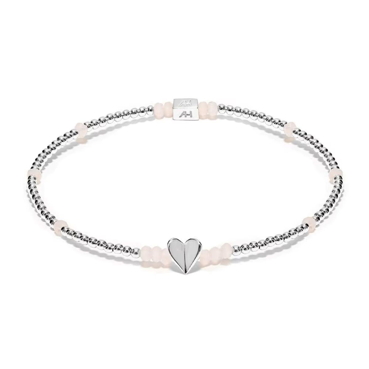 The Annie Haak Sweet Pea Silver Bracelet combines rose rondelle crystals and 925 Sterling Silver beads with a small heart charm, offering a delicate, feminine look. Perfect for daily wear, it adds subtle blush tones to your wrist.