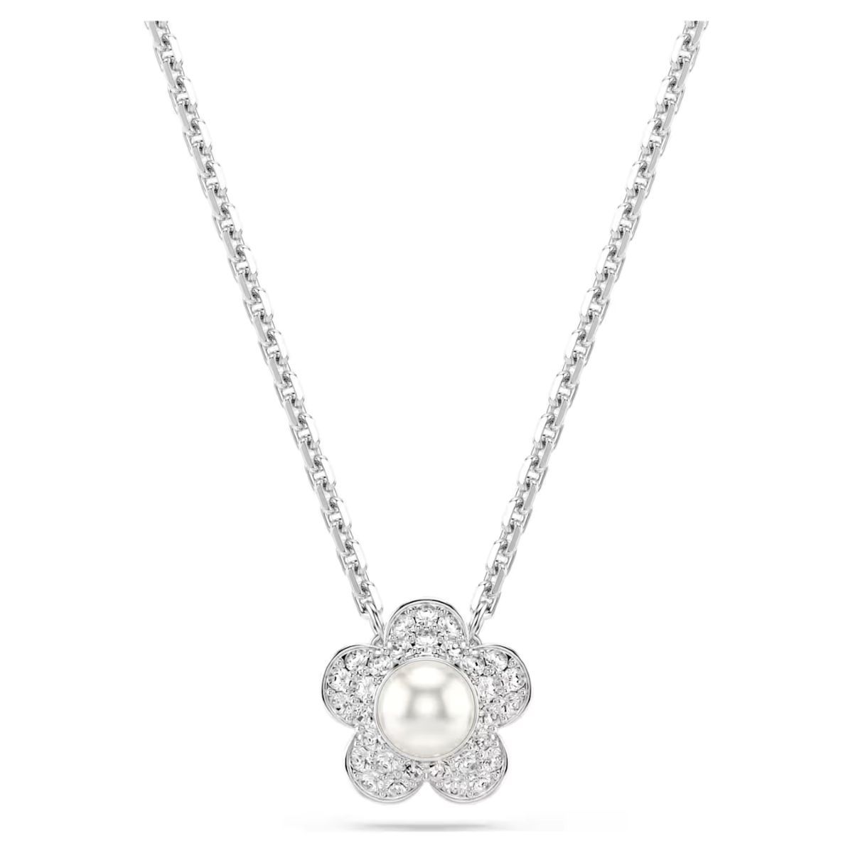 This rhodium plated Swarovski pendant features a finely crafted flower design, with a crystal centrepiece and pavé adorned petals, offering an elegant tribute to nature. From the Ariana Grande x Swarovski collection, it is it's a gentle tribute to nature.