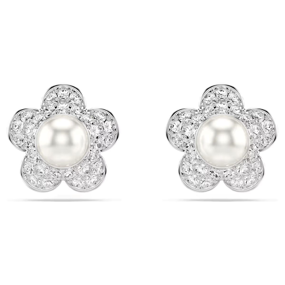Designed with subtle elegance in mind, these rhodium-plated studs feature a delicate floral motif, showcasing a sparkling crystal centre surrounded by pavé adorned petals.