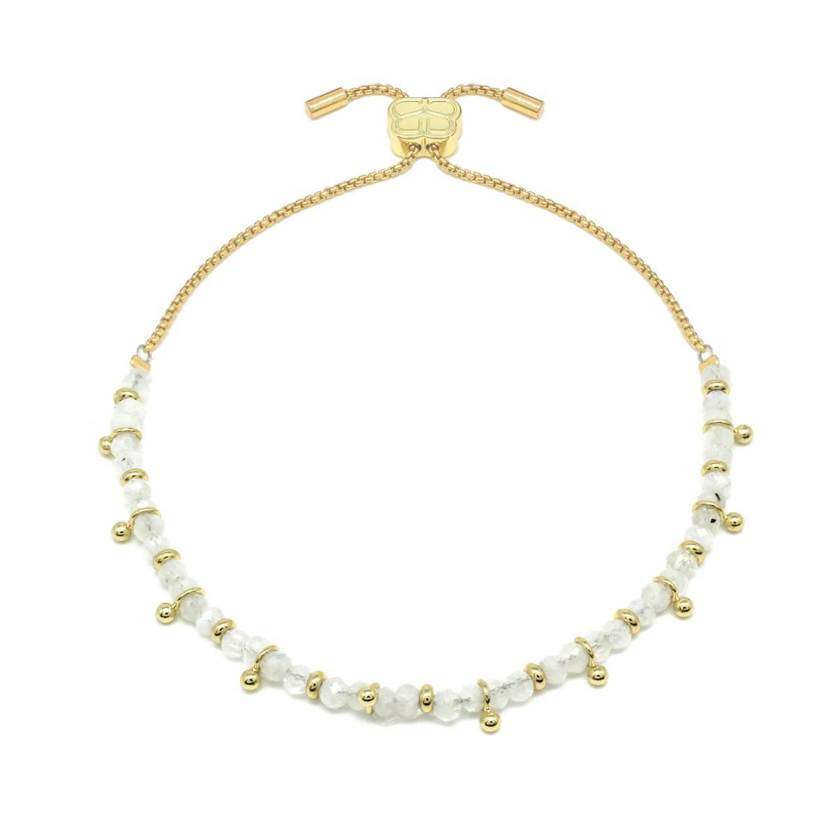 Add this Boho Betty Harmony Rainbow Moonstone Gold Slider Bracelet to your bracelet stack and enjoy the properties of its natural gemstones. Known as the ‘Traveller's stone’, moonstone is said to spur creativity and intuition, to calm fears and promote wisdom and knowledge.
