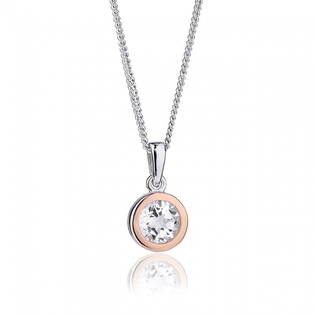 This dainty Clogau necklace is crafted in rhodium plated sterling silver and 9k Welsh rose gold, with a solitaire white topaz stone in the centre. Perfect for everyday wear or to make an outfit sparkle.