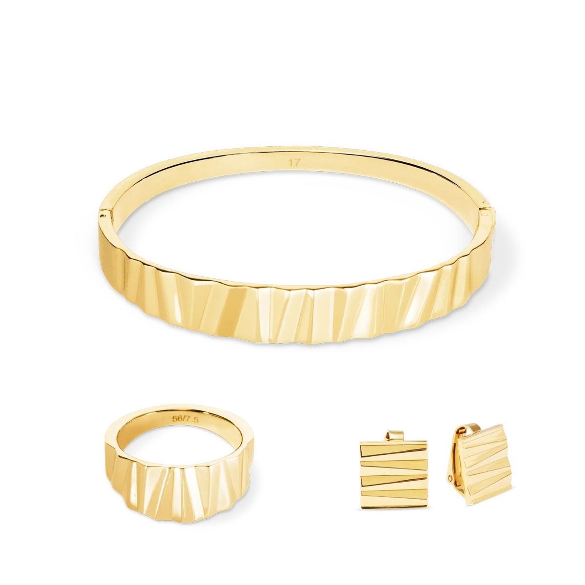 This Classic Wave Gold bangle by Coeur De Lion in gold plated stainless steel, with flowing wave design. Wear alone or as a layering piece, this bangle will add elegance to any look.