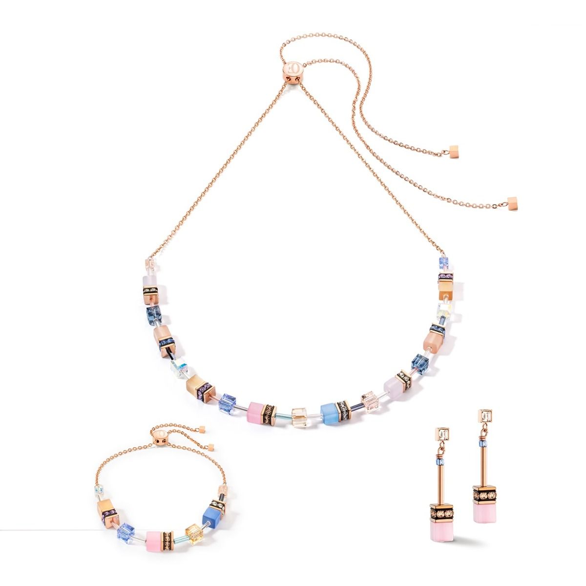 The classic GeoCUBE necklace from Coeur De Lion, perfect for layering. Featuring a sliding fastener to wear at any length to suit any outfit and mood.