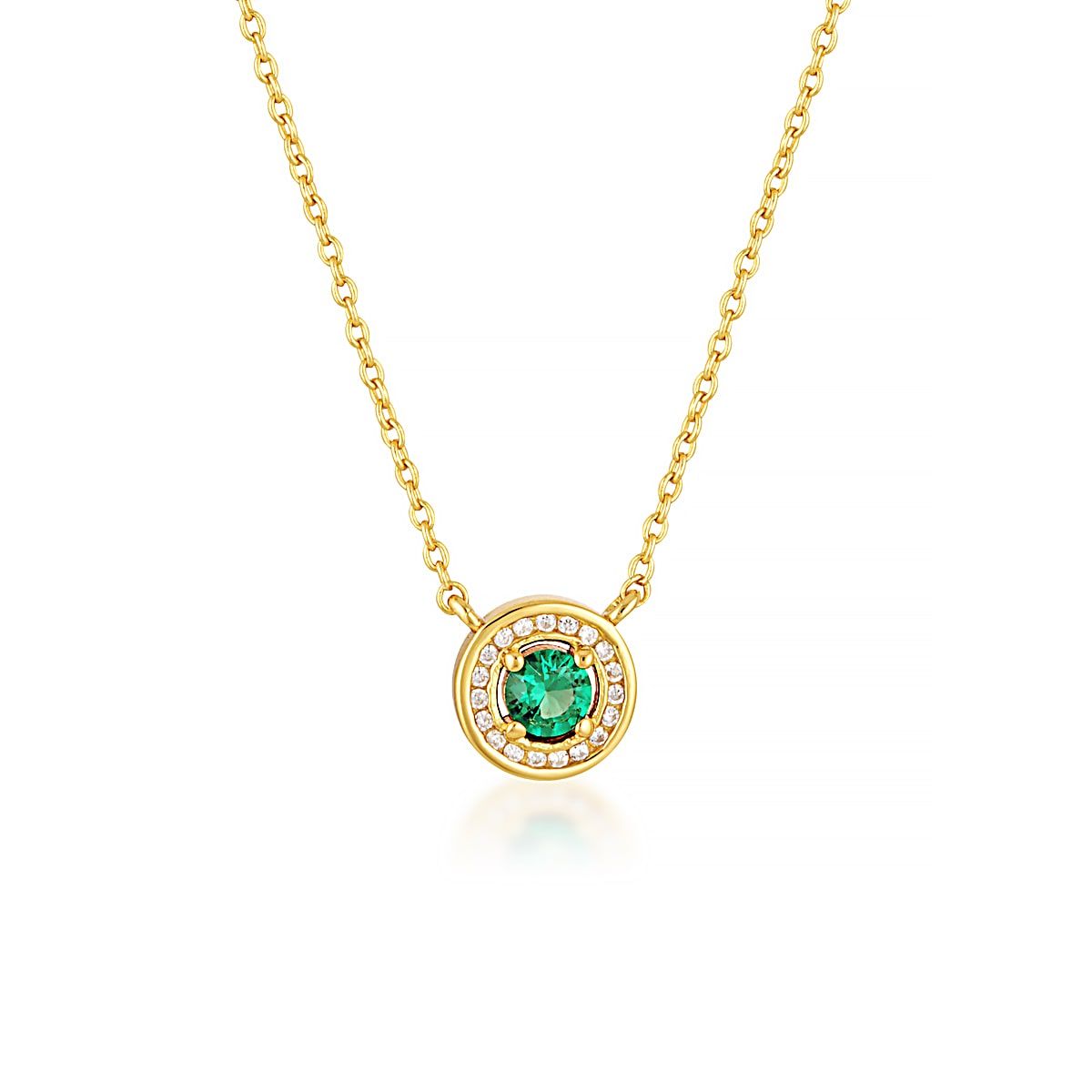 This classic halo pendant necklace by Georgini is perfect for subtle sparkle, crafted in 18k gold plated sterling silver with emerald green coloured and clear cubic zirconia.