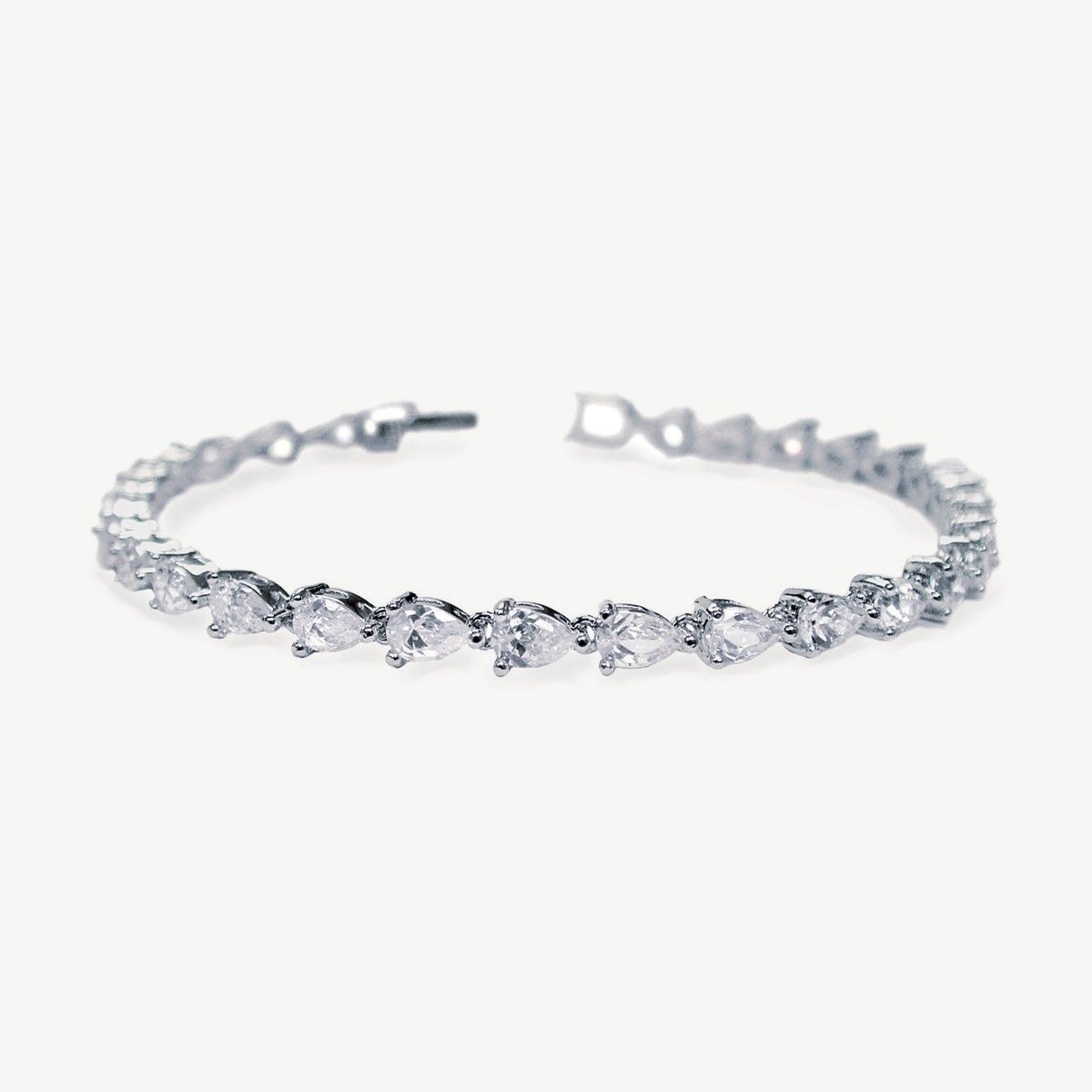 This Ivory & Co bracelet features an elegant row of pear cut dazzling stones. This sparkling but understated bracelet is chic and ideal for brides wanting a simple yet sophisticated style for their wedding day.