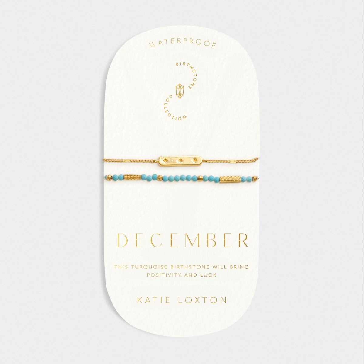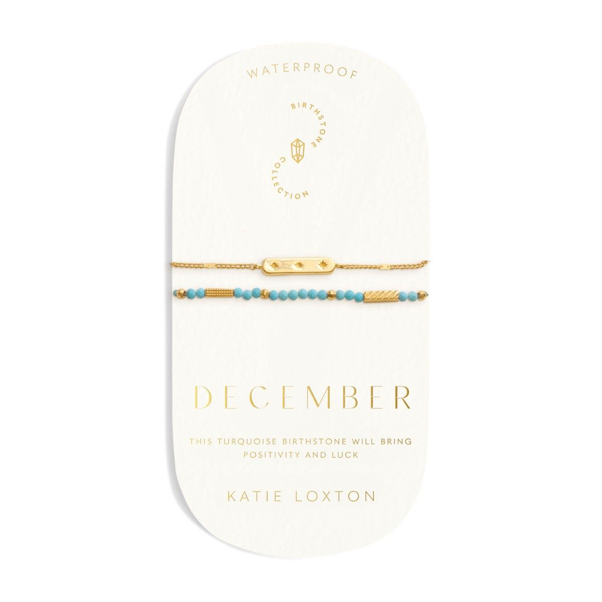 The Katie Loxton 'December' Waterproof Gold Birthstone Bracelet will be delivered in the official branded packaging for this design, as supplied by the manufacturer. For non-branded items, Niche Jewellery packaging will be supplied.