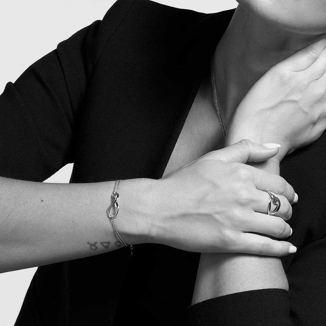 The Kit Heath Silver Infinity Twin Chain Bracelet will be delivered in the official branded packaging for this design, as supplied by the manufacturer. For non-branded items, Niche Jewellery packaging will be supplied.