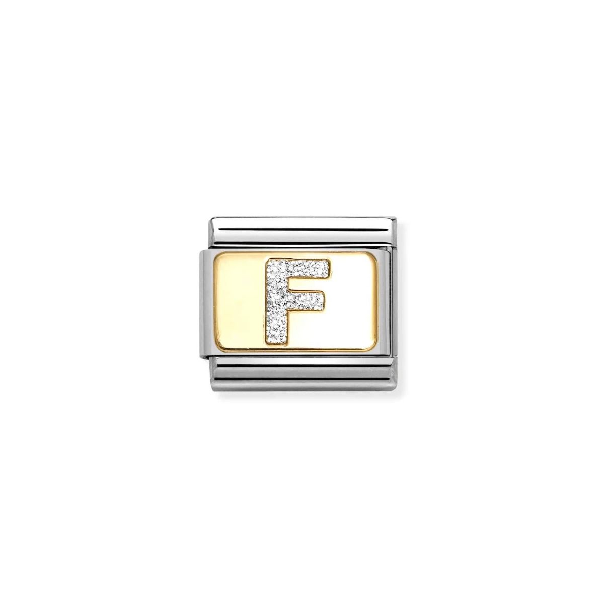 The Nomination Classic Gold with Silver Glitter Letter F Charm will be delivered in the official branded packaging for this design, as supplied by the manufacturer. For non-branded items, Niche Jewellery packaging will be supplied.