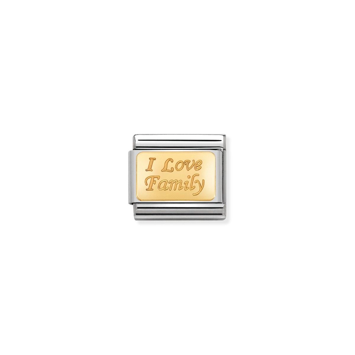 Show how important your family is to you by adding this 'I love Family' charm to your Nomination Charm Bracelet. Crafted in stainless steel and 18k Gold, this charm is compatible with the Nomination Composable Classic bracelet.