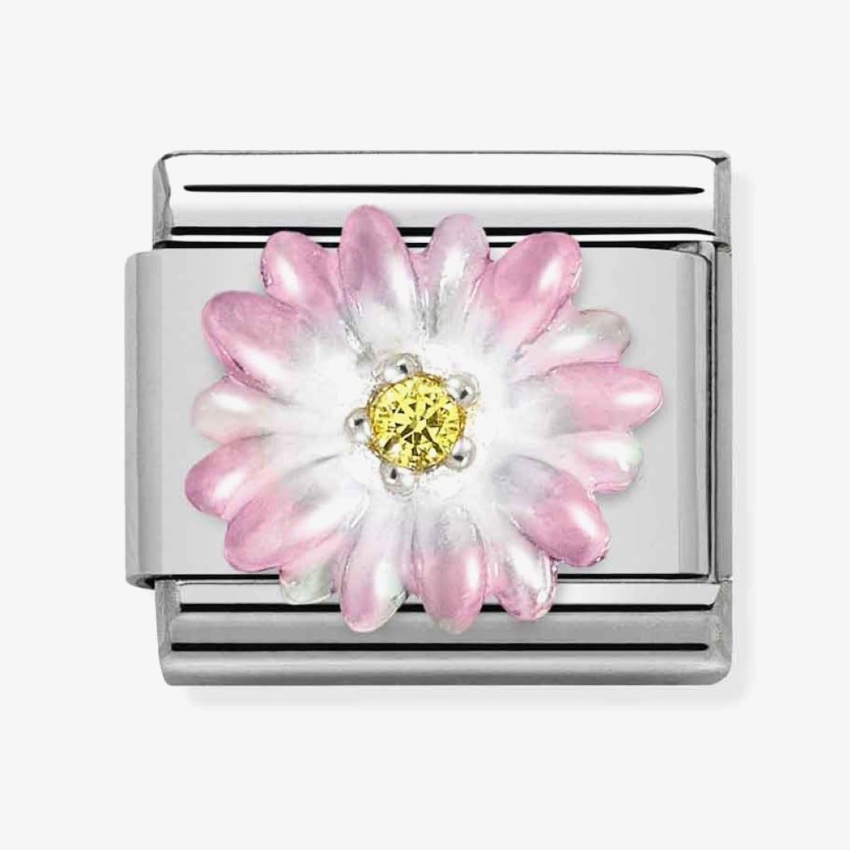 The Nomination Classic Silver Yellow Zirconia and Pink Enamel Flower Charm will be delivered in the official branded packaging for this design, as supplied by the manufacturer. For non-branded items, Niche Jewellery packaging will be supplied.