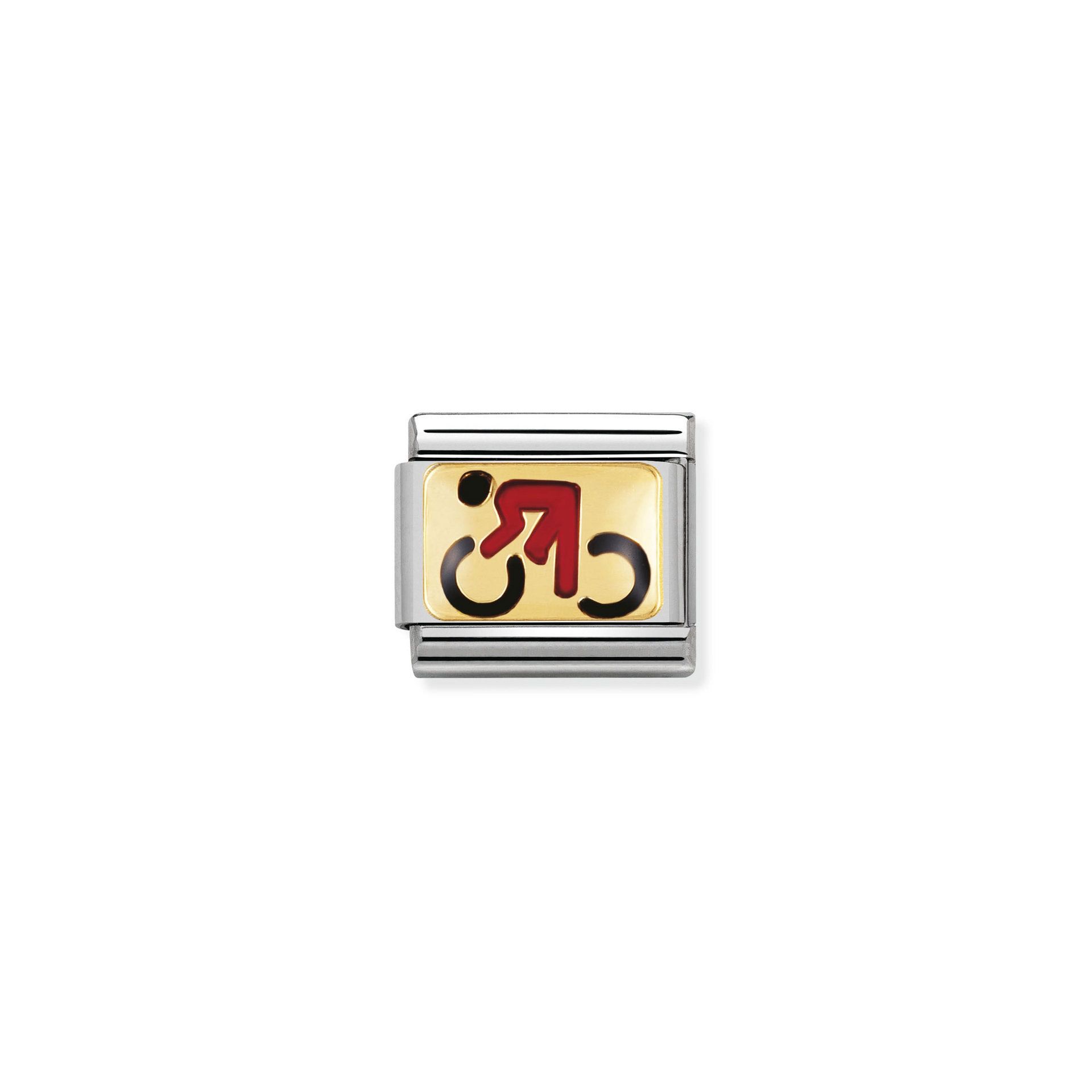 This Nomination tile charm is celebrating everything sports with a cyclist in red and black enamel surrouned in 18k gold.
