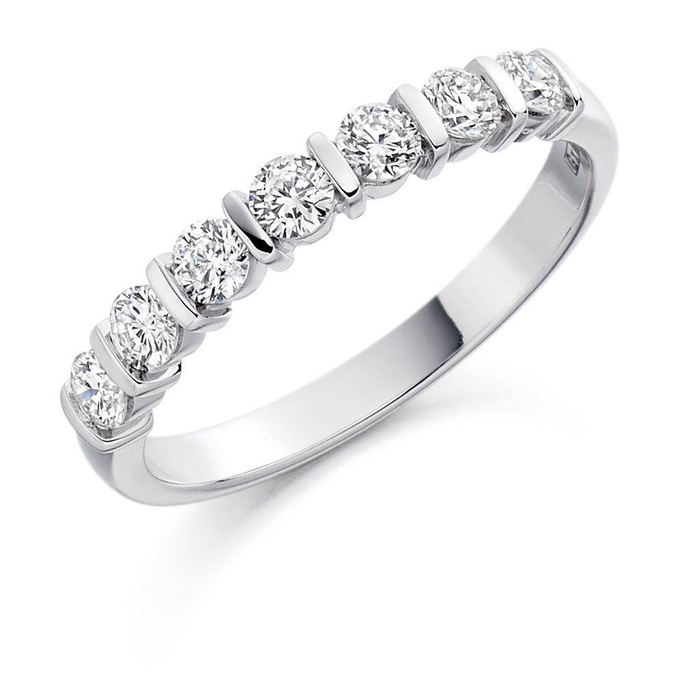 This Raphael Collection Half Eternity Ring stands out with its sparkling round brilliant diamonds and unique bar setting.