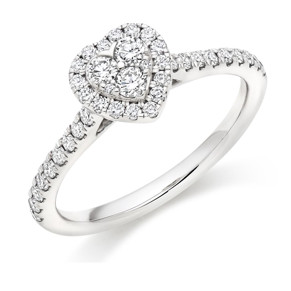 This cluster diamond halo engagement ring features a multi-stone central setting in a heart shape, with a diamond halo and band. Your diamond ring will be handcrafted ready for delivery in 3-4 weeks.