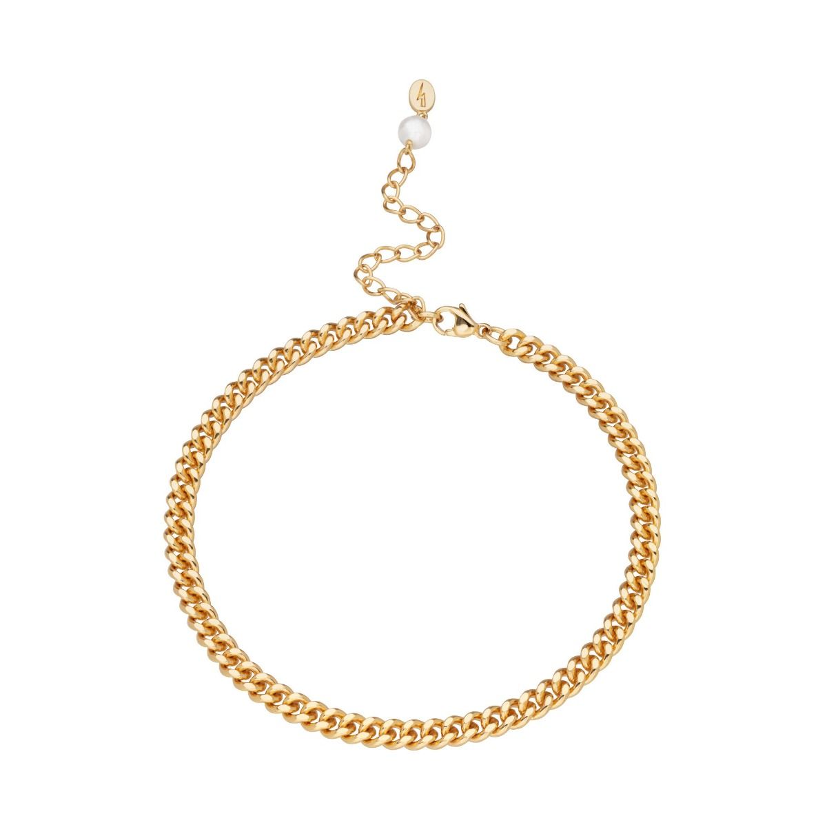 The Scream Pretty Curb Chain anklet features an extension chain and pearl drop that reflects iridescent white hues. The perfect summer accessory to embrace the chunky chain jewellery trend.