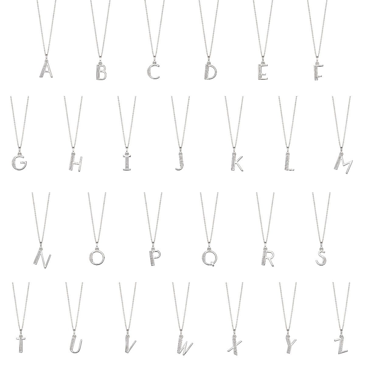 This Sterling Silver necklace featuring a letter pendant embellished with clear zirconia sparkle.