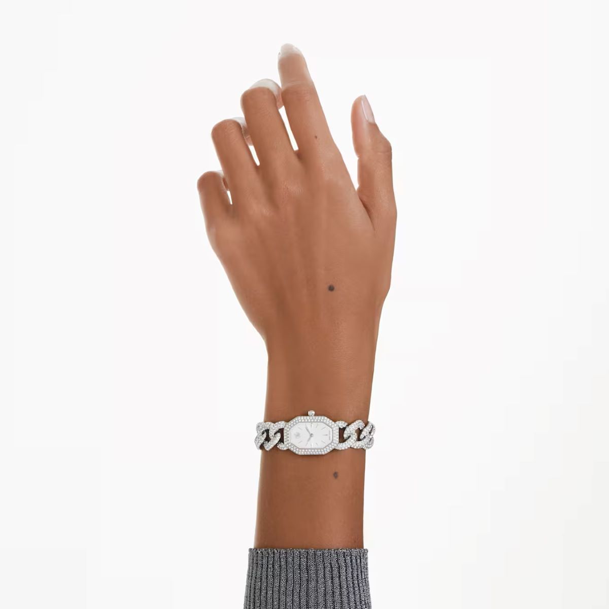 This Swarovski watch is sure to elevate your style. Featuring sparkling crystals and outstanding design, a Swarovski watch also makes the perfect gift. The adjustable chain bracelet embellished with 530 crystals while a single crystal is set within the crown.