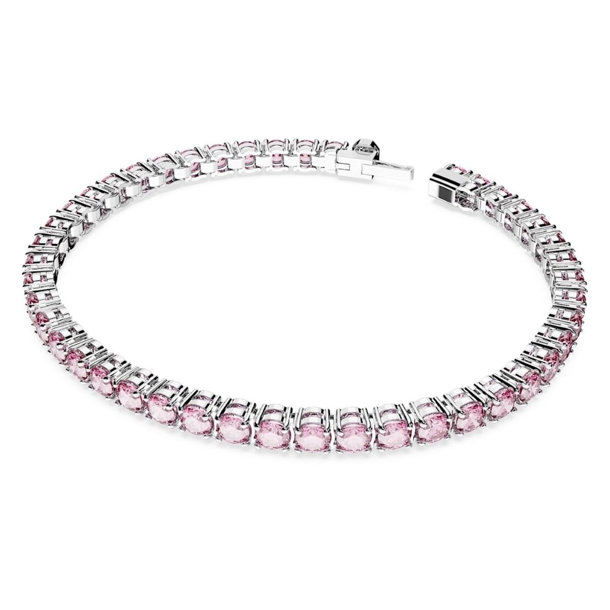 Enjoy the glimmer of rich colour with this pink tennis bracelet. Featuring sparkling crystals and outstanding design, Swarovski jewellery also makes the perfect gift.