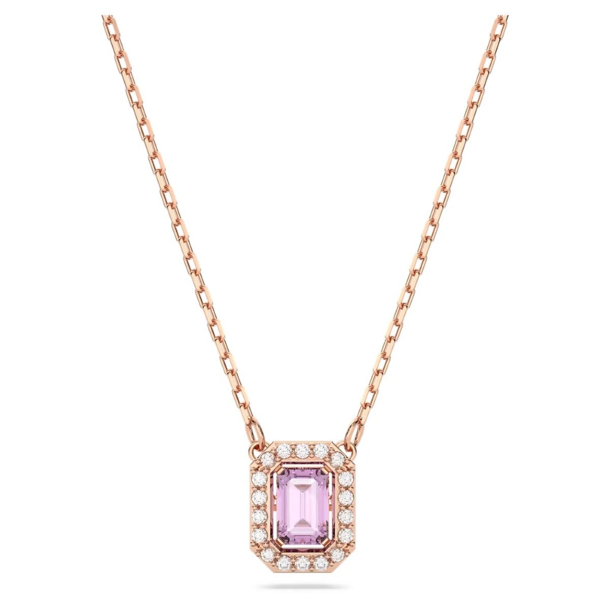 The Swarovski Millenia Octagon Cut Pendant - Purple with Rose Gold Plating will be delivered in the official branded packaging for this design, as supplied by the manufacturer. For non-branded items, Niche Jewellery packaging will be supplied.