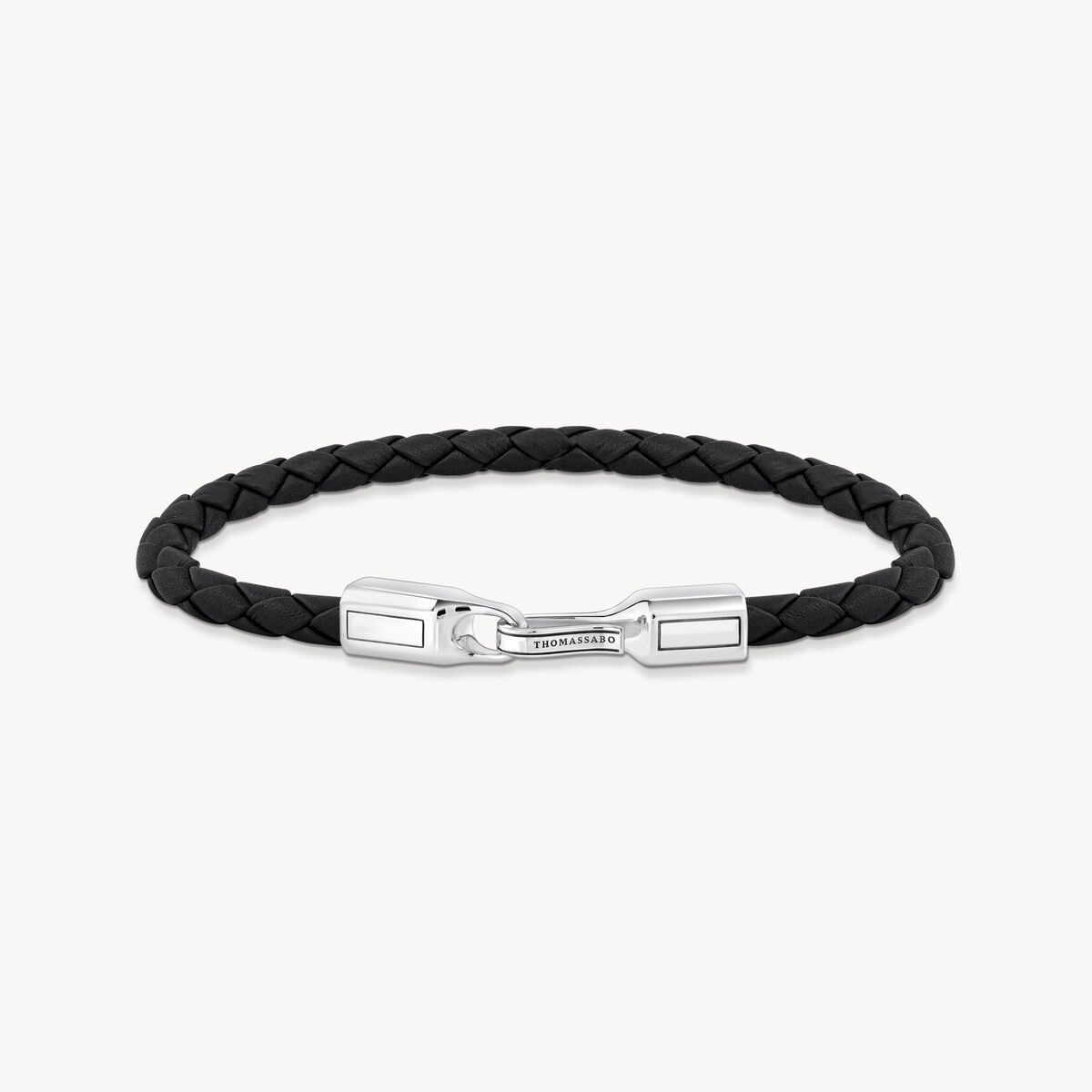 This Thomas Sabo bracelet features braided black leather and a clasp crafted from recycled, blackened silver. Its contemporary urban design presents well either worn individually or layered with other bracelets to achieve a distinctive style.